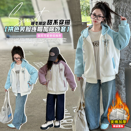 1*5下载“YM6182女童拼色加绒冲锋派克服”图片包