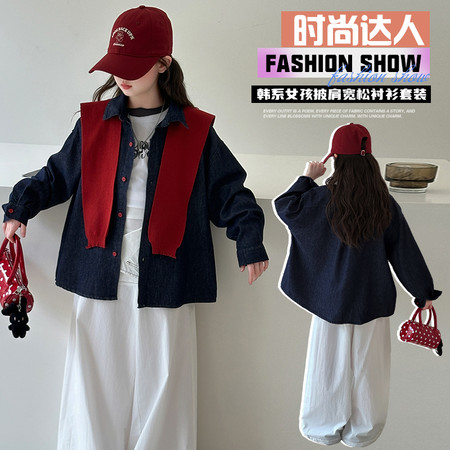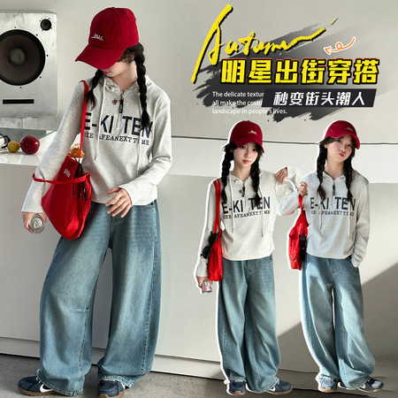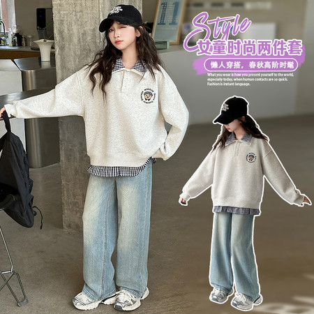 1*5下载“YM6003女童双层领卫衣牛仔裤套装”图片包