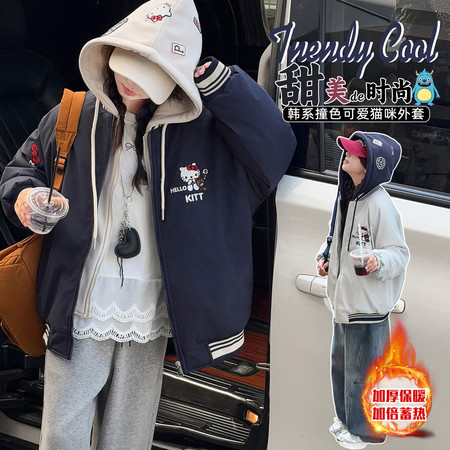 梦*装收藏“YM6185女童连帽夹棉KITTY外套”