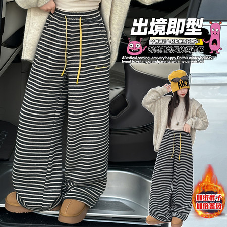 1*3下载“YM61910女童黄色腰绳加绒条纹裤”图片包