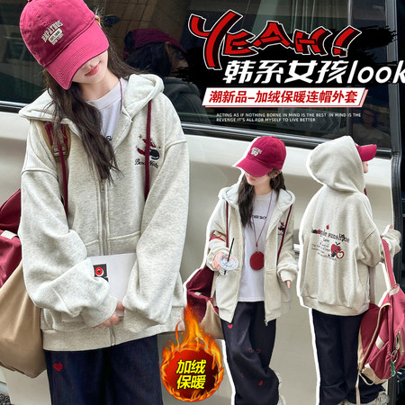 柠*主下载视频“YM6193女童苹果印花加绒外套”