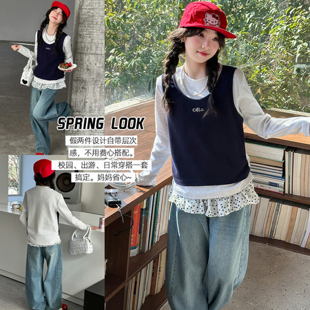 1*6下载“YM150女童圆点针织马甲三件套”图片包